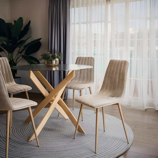Καρέκλα ChairEase PW μπεζ ύφασμα και ξύλινο πόδι σε φυσική απόχρωση 56.5x43x83.5εκ