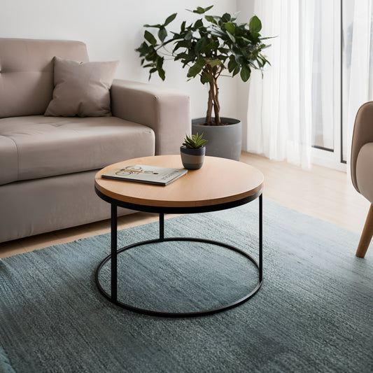 Τραπέζι σαλονιού Barilo PW oak μελαμίνης-μαύρο μέταλλο Φ60x40εκ