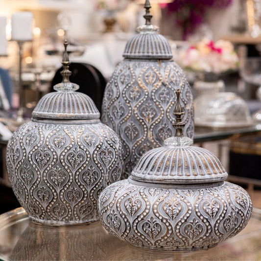 Τα διακοσμητικά βάζα αποτελούν ένα από τα πιο ευέλικτα και κομψά διακοσμητικά στοιχεία για κάθε χώρο του σπιτιού. Χρησιμοποιούνται για να προσθέσουν χρώμα, υφή και ενδιαφέρον, ενώ παράλληλα μπορούν να αναδείξουν οποιοδήποτε δωμάτιο με μια νότα πολυτέλειας και φινέτσας. Στη συλλογή μας θα βρείτε μια μεγάλη ποικιλία από διακοσμητικά βάζα, σε διαφορετικά στυλ και μεγέθη, που καλύπτουν κάθε ανάγκη και γούστο. Από μοντέρνα σχέδια με καθαρές γραμμές μέχρι κλασικά και vintage βάζα, κάθε κομμάτι έχει επιλεγεί για να προσφέρει μοναδική αισθητική στον χώρο σας.