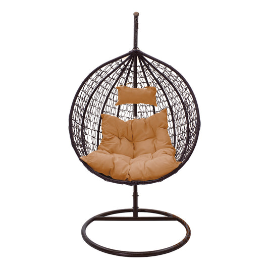 Κούνια Zafer pakoworld κρεμαστή μέταλλο-pp καφέ-μαξιλάρι καφέ 106x103x200εκ