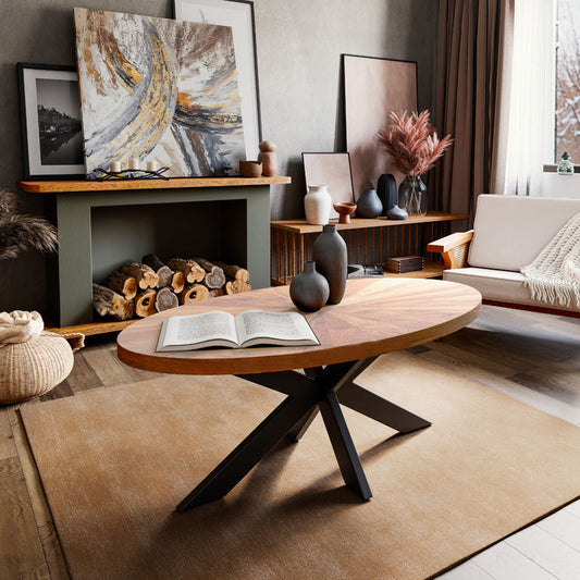 Τραπέζι Nebula PW οβάλ μασίφ ξύλο ακακίας φυσικό-μαύρο-φυσικό 120x60x45εκ