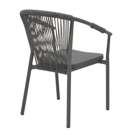 Πολυθρόνα αλουμινίου Tenio PW στοιβαζόμενη ανθρακί σκελετός-textilene-rattan 56x63x82εκ