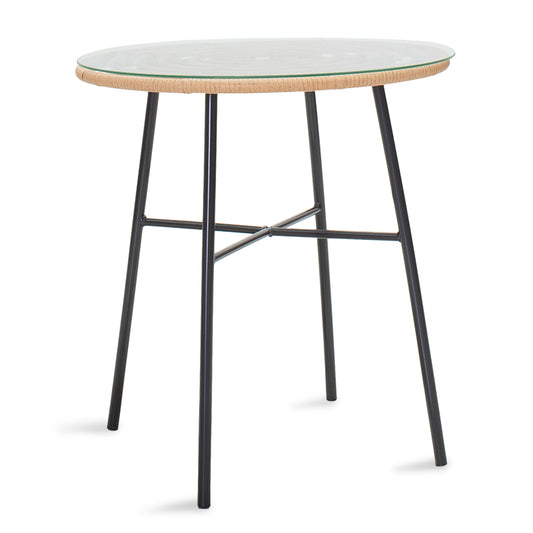 Τραπεζαρία Naoki pakoworld σετ 3 τμχ rattan φυσικό-μαύρο μέταλλο-γυαλί 80x80x78εκ