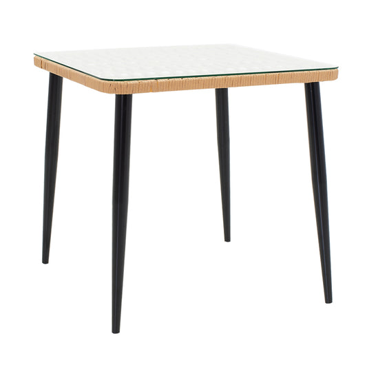 Τραπεζαρία Naoki F pakoworld σετ 3 τμχ rattan φυσικό-μαύρο μέταλλο-γυαλί 80x80x78εκ