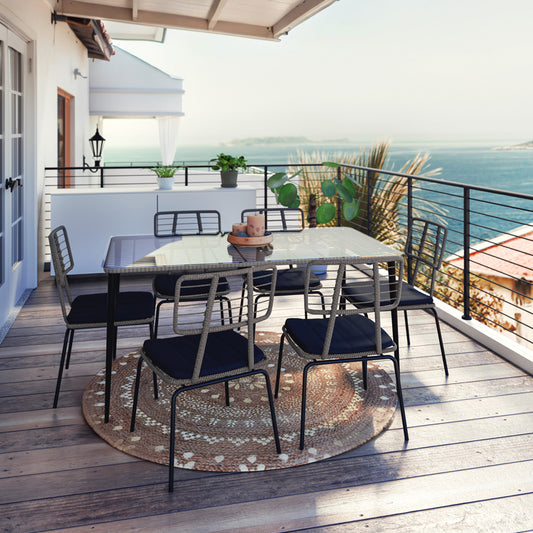 Τραπεζαρία Naoki B pakoworld σετ 7 τμχ rattan φυσικό-μαύρο μέταλλο-γυαλί 160x90x78εκ