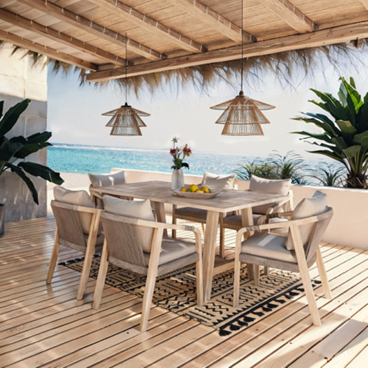 Τραπεζαρία Warmo-Sopho pakoworld σετ 7τεμ φυσικό μασίφ ξύλο ακακίας 200/150x100x75εκ