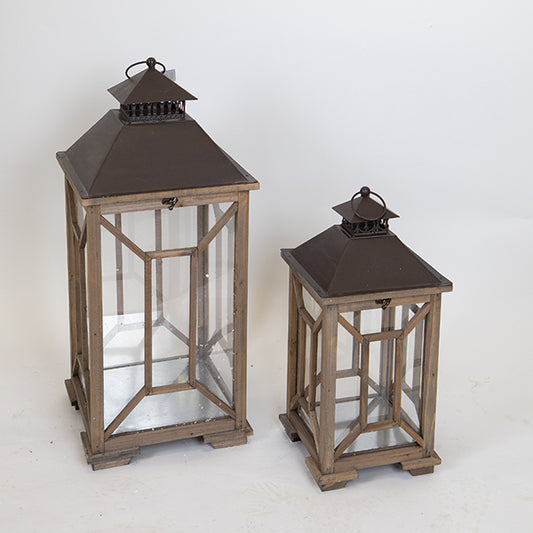 Ξύλινα φανάρια οθογώνια καφέ 28x28x73 και 21x21x52,5εκ