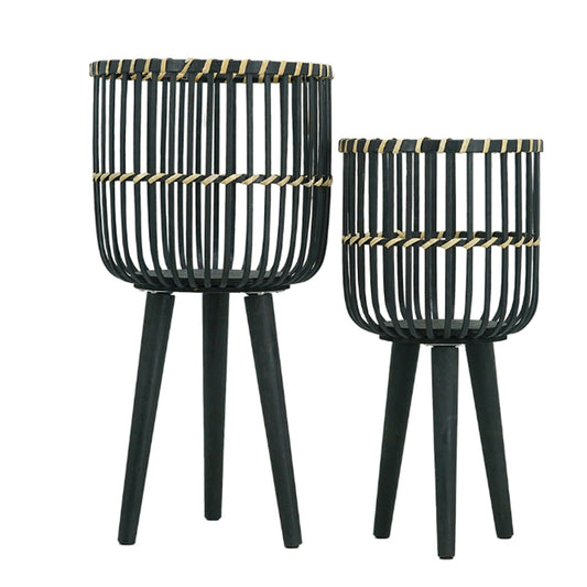 Artekko Bohemian Κασπώ Μπαμπού Ξύλο Ρατάν Μαύρο (29x29x58)cm Σετ/2