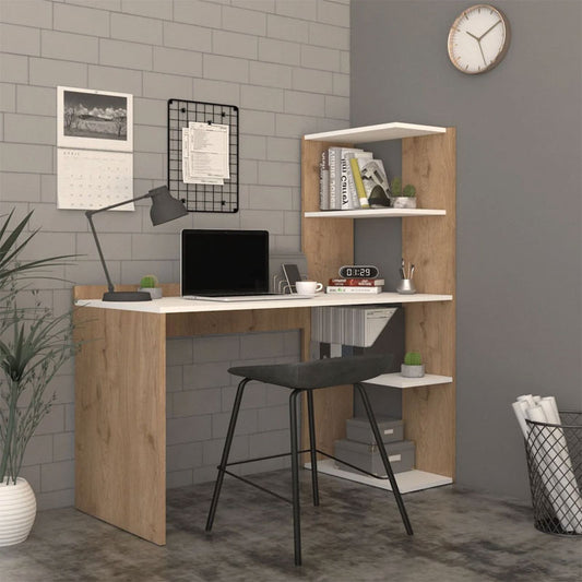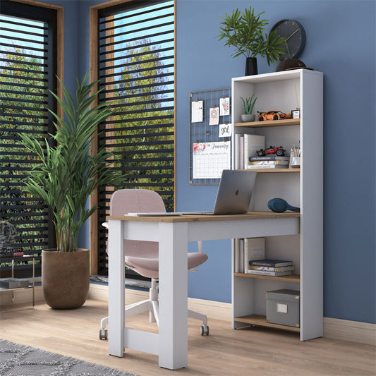 Γραφείο Teflo PW με ραφιέρα-MDF φυσικό-λευκό 107x40x110εκ