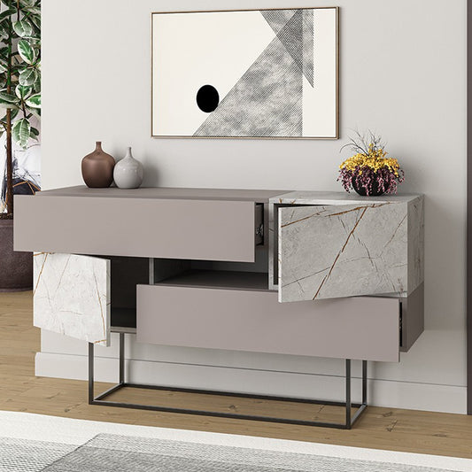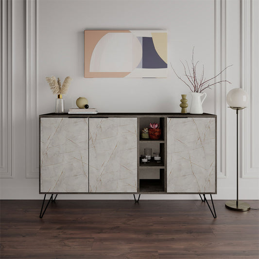 Μπουφές Trom PW σε γκρι-μπεζ απόχρωση και επιφάνεια σε όψη μαρμάρου 180x45x80εκ