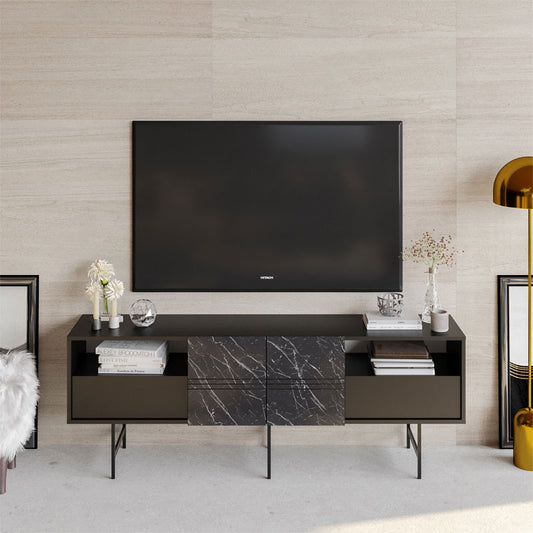 Μπουφές Kevan pakoworld μαύρο μαρμάρου-μαύρο πόδι 180x35x65εκ