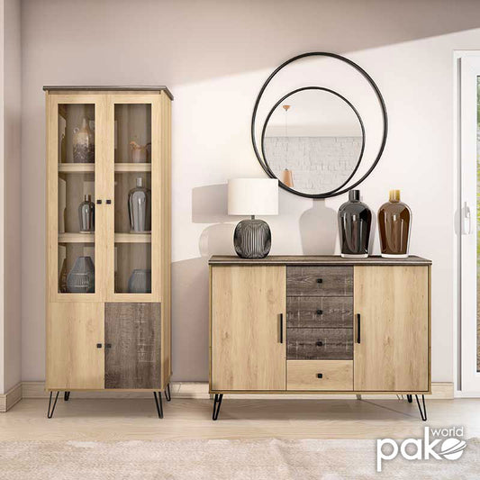 Μπουφές Ursula pakoworld φυσικό-μαύρο 123x35x77.5εκ