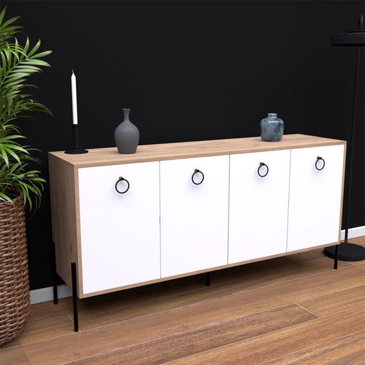 Μπουφές Tajesy pakoworld μελαμίνης λευκό-oak 180x40x78εκ