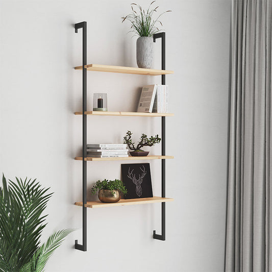Ραφιέρα τοίχου Villano PW μασίφ ξύλο πεύκου φυσικό-μαύρο 69x21x150εκ