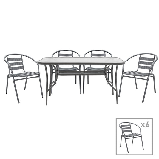 Τραπεζαρία Valor-Obbi σετ 7τεμ pakoworld μέταλλο-pe γκρι