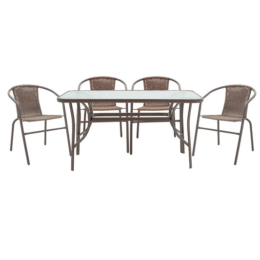 Tραπεζαρία Obbi-Watson pakoworld σετ 5τεμ καφέ μέταλλο-pe rattan 80x80x70εκ
