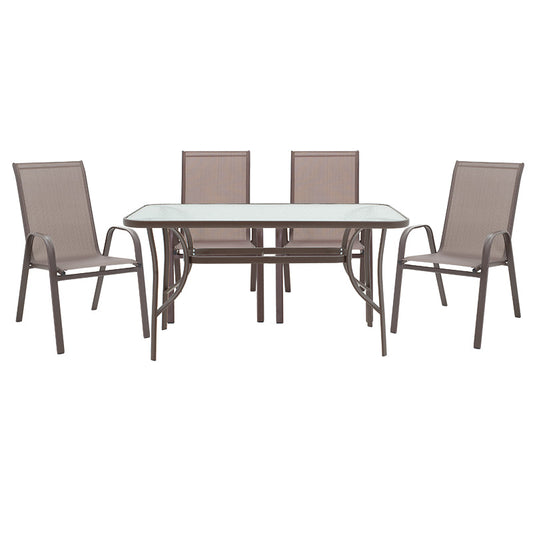 Τραπεζαρία Valor-Calan σετ 5τεμ pakoworld μέταλλο-textilene καφέ