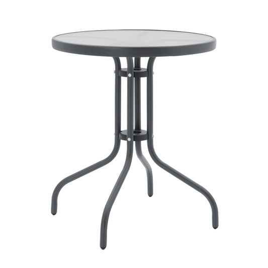 Tραπεζαρία Calan-Watson pakoworld σετ 3τεμ μέταλλο γκρι και γυαλί tempered Φ60x70εκ