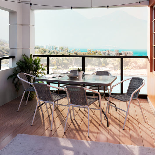 Τραπεζαρία Ensure-Tade pakoworld σετ 7τεμ μέταλλο-γυαλί ανθρακί 140x80x70εκ
