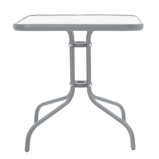 Τραπέζι Nekora PW μέταλλο μαύρο-pe γκρι-γυαλί 80x80x78εκ