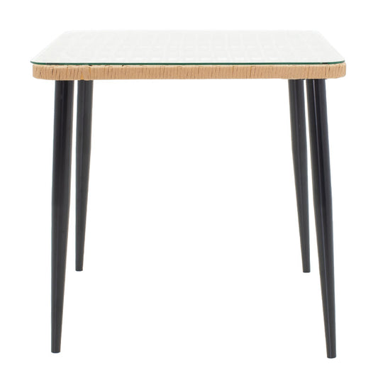 Τραπέζι Nekora pakoworld μέταλλο μαύρο-pe φυσικό-γυαλί 80x80x78εκ