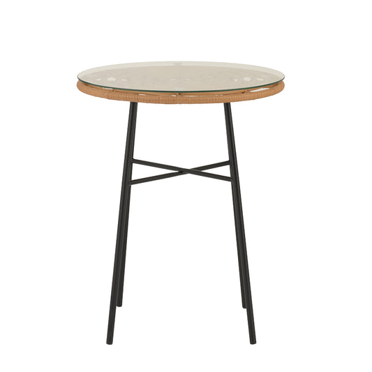 Τραπέζι Radon PW μέταλλο μαύρο-pe φυσικό-γυαλί Φ70x74εκ