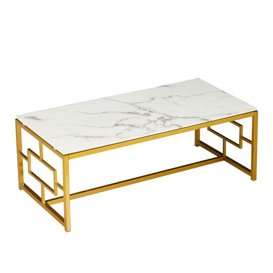 Τραπέζι σαλονιού Adrix PW χρυσό-επιφάνεια λευκό μαρμάρου 8mm 120x60x44εκ
