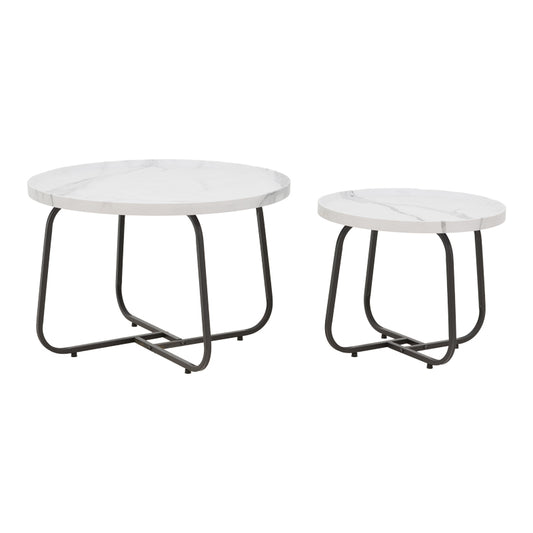 Tραπέζια σαλονιού Elegantis PW σετ 2τεμ MDF σε απόχρωση λευκό μαρμάρου και μαύρα μεταλλικά πόδια
