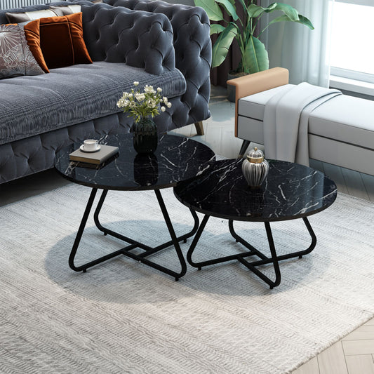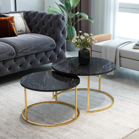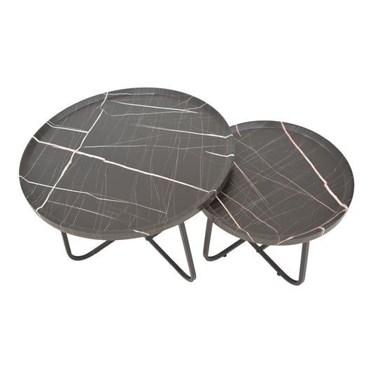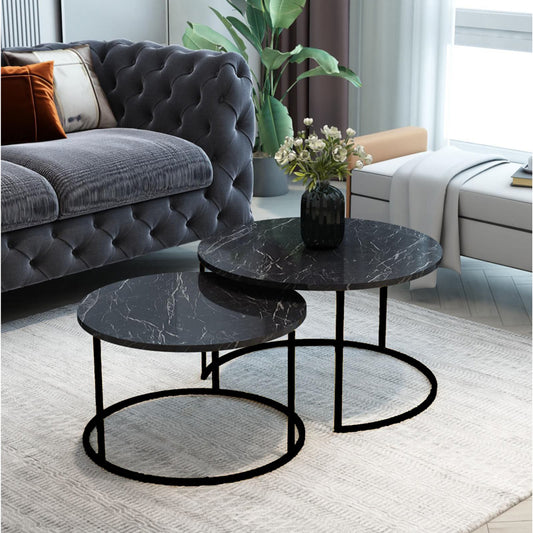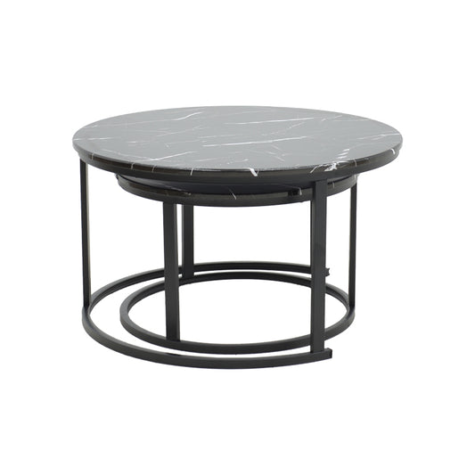 Τραπέζι σαλονιού Vintage PW σετ 2τεμ mdf σε απόχρωση μαύρο όψης μαρμάρου 80x80x45εκ