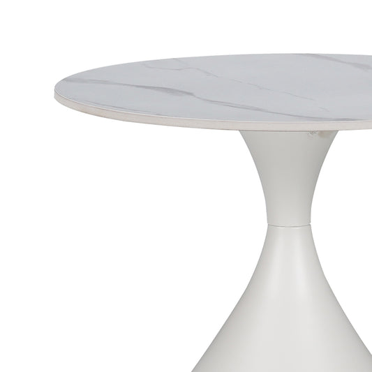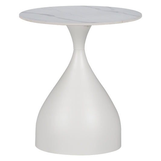 Βοηθητικό τραπέζι Hylax PW sintered stone σε απόχρωση λευκό μαρμάρου με λευκό μέταλλο Φ50x50εκ
