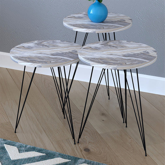 Βοηθητικά τραπέζια σαλονιού Ilvyn PW σετ 3τεμ απομίμηση λευκό γκρι μαρμάρου-μαύρο