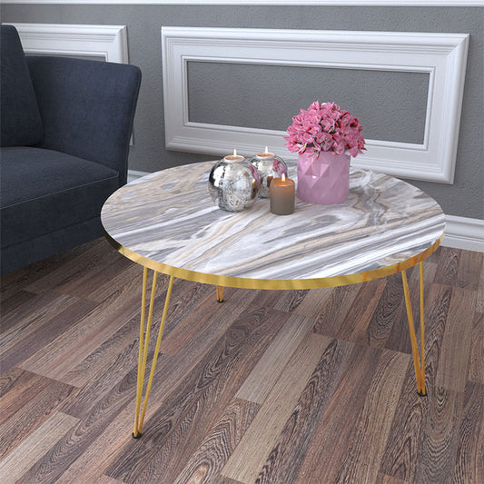 Τραπεζάκι σαλονιού Hyperion PW μελαμίνης λευκό μαρμάρου-χρυσό μέταλλο Φ80x45εκ