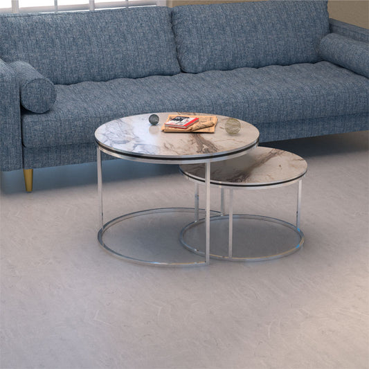 Τραπέζια σαλονιού Ygron PW σετ 2τεμ λευκό μαύρο μάρμαρου-ασημί