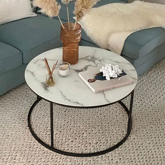 Τραπέζι σαλονιού Oxero PW μελαμίνης λευκό μαρμάρου-μαύρο μέταλλο Φ60x42εκ