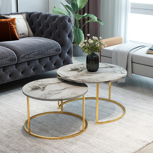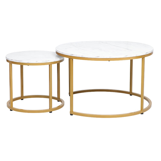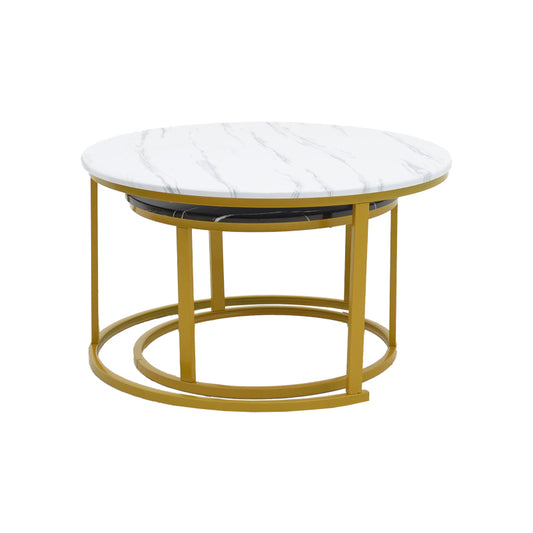 Τραπέζια σαλονιού Ulviron PW σετ 2τεμ λευκό μαρμάρου-χρυσό