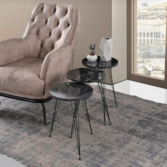 Βοηθητικά τραπέζια Klyntar PW σετ 3τεμ μαύρο μαρμάρου μελαμίνης-μαύρο μέταλλο