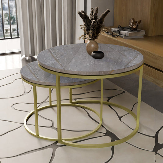 Τραπέζια σαλονιού Alento PW σετ 2τεμ γκρι μάρμαρου μελαμίνης-χρυσό μέταλλο