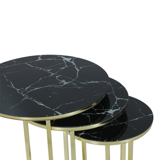 Βοηθητικά τραπέζια Klyntar PW σετ 3τεμ μαύρο μαρμάρου μελαμίνης-χρυσό μέταλλο