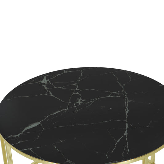 Τραπέζια σαλονιού Alento PW σετ 2τεμ μαύρο μάρμαρου μελαμίνης-χρυσό μέταλλο