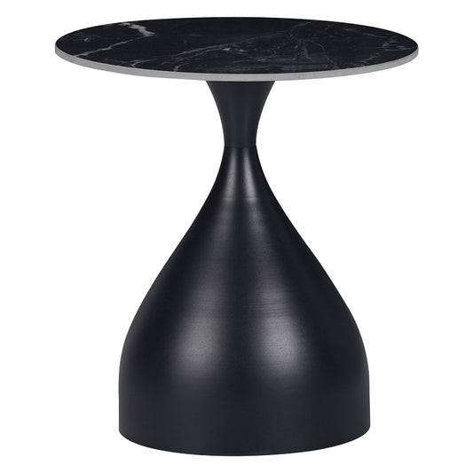 Βοηθητικό τραπέζι Etrion PW sintered stone σε απόχρωση μαύρο μαρμάρου με μαύρο μέταλλο Φ50x50εκ