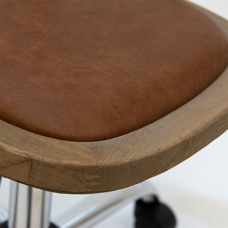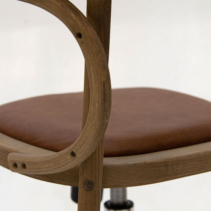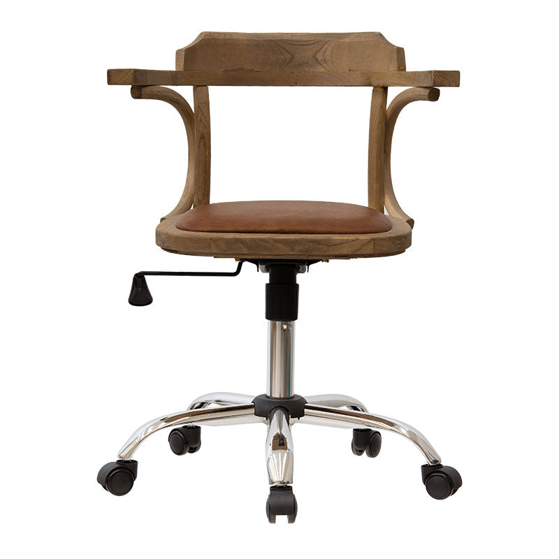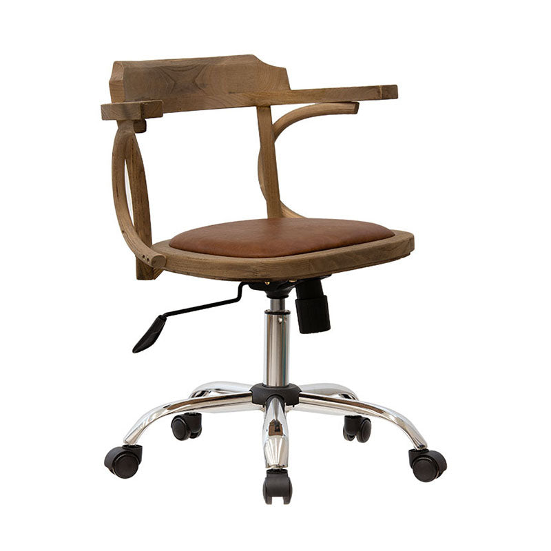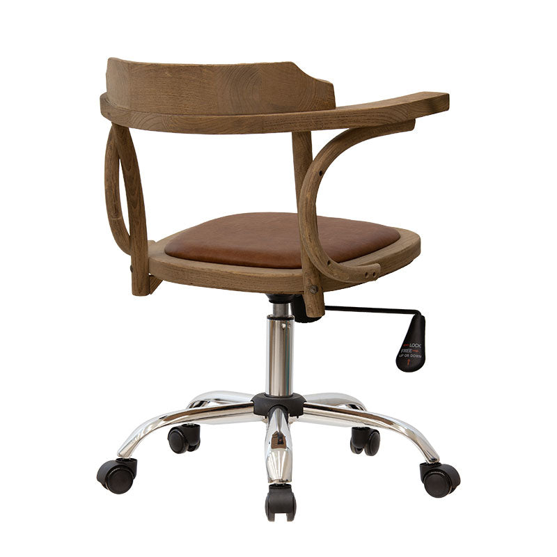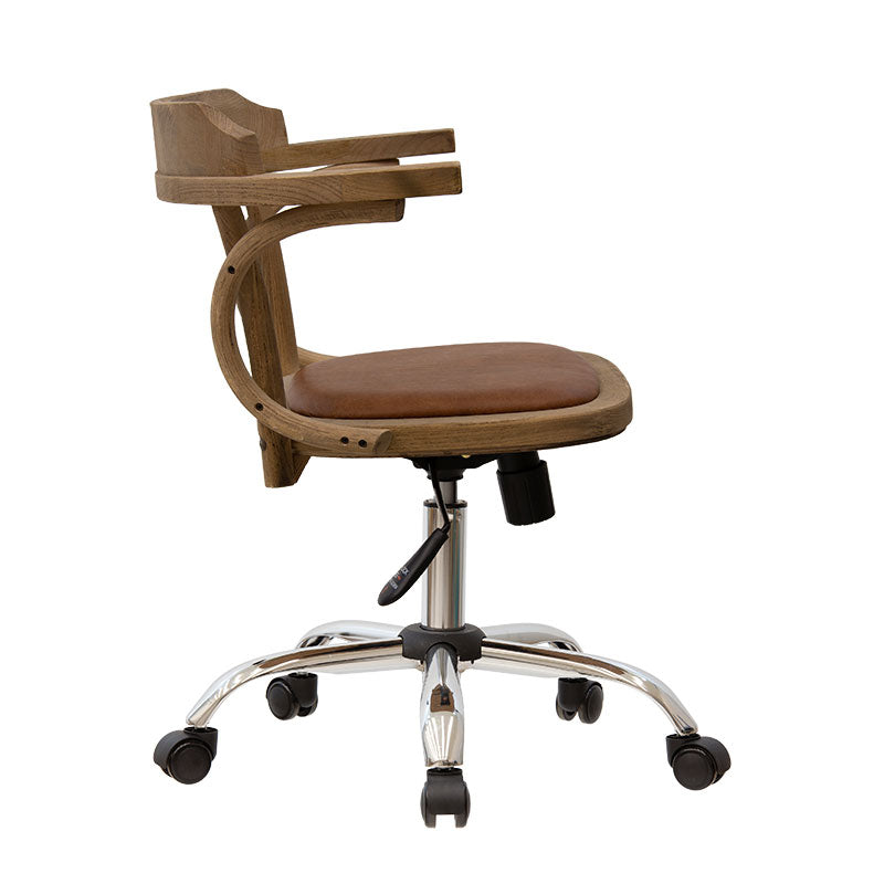 Καρέκλα γραφείου εργασίας Retro PW μασίφ ξύλο καρυδί-pu καφέ