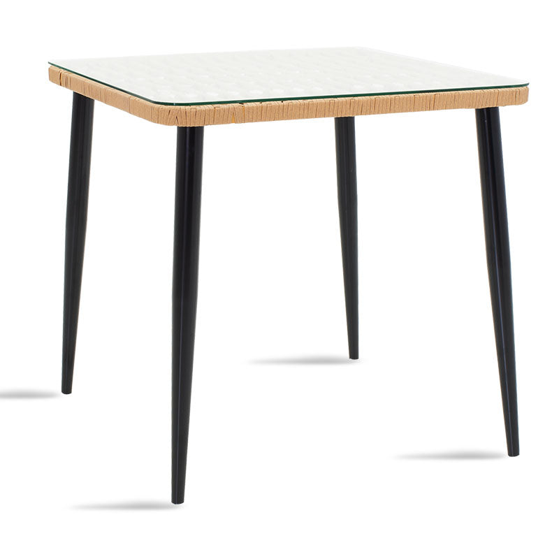 Τραπέζι Nekora pakoworld μέταλλο μαύρο-pe φυσικό-γυαλί 80x80x78εκ