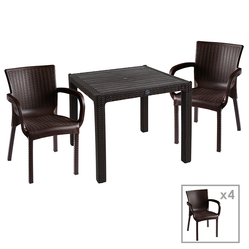 Τραπεζαρία κήπου Explore-Festive pakoworld σετ 5τεμ PP καφέ 90x90x73,5εκ.