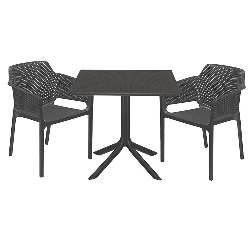 Τραπεζαρία Groovy-Integral pakoworld σετ 3τεμ PP ανθρακί 80x80x74,5εκ