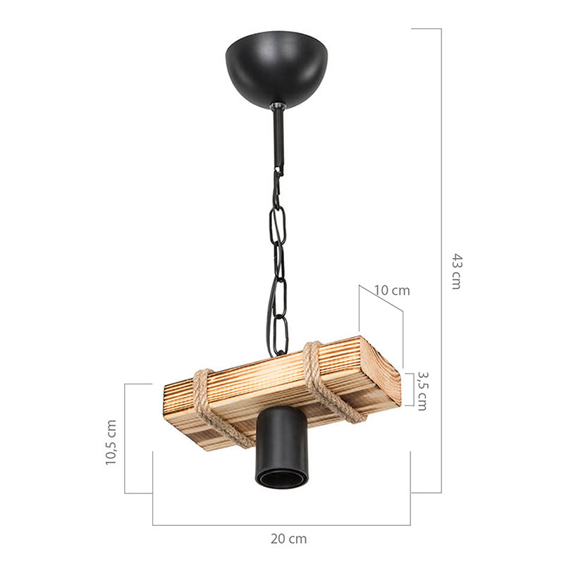 Φωτιστικό οροφής Qylo PW Ε27 φυσικό-μαύρο 20x10x43εκ