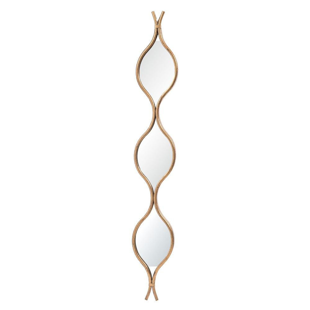 Ο Καθρέπτης Τοίχου αποτελεί τη νούμερο ένα επιλογή για τη διακόσμηση οικιακών και επαγγελματικών χώρων κλασικής αλλά και μοντέρνας αισθητικής. Ο συγκεκριμένος καθρέφτης έχει ένα ιδιαίτερο σχήμα που θυμίζει σταγόνες νερού. Η κάθε καμπύλη ενώνεται με την επόμενη, δημιουργώντας ένα μοναδικό, συμμετρικό και εντυπωσιακό σχέδιο, ιδανικό για μοντέρνους και κομψούς χώρους. Χαρακτηριστικά: •Διάσταση: 15Χ100εκ •Υλικό: Μέταλλο •Χρώμα: Χρυσό