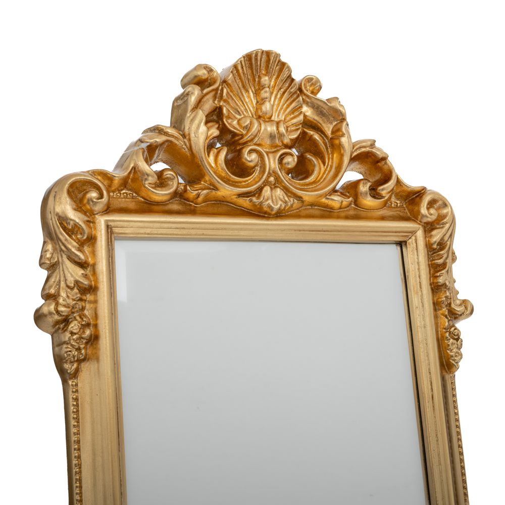 Διακοσμητικός Καθρέφτης επιδαπέδιος με Χρυσό Πλαίσιο και Ανάγλυφες Λεπτομέρειες Αναβαθμίστε τη διακόσμηση του χώρου σας με αυτόν τον κομψό καθρέφτη τοίχου. Το χρυσό του πλαίσιο, διακοσμημένο με ανάγλυφες λεπτομέρειες, αποπνέει πολυτέλεια και διαχρονικό στυλ, καθιστώντας τον ιδανική επιλογή για κλασικούς και μοντέρνους χώρους. Ιδανικός για το σαλόνι, την είσοδο, την κρεβατοκάμαρα ή επαγγελματικούς χώρους όπως ξενοδοχεία και εστιατόρια. Υλικό Πλαισίου: πολυρεσίνη με φινίρισμα χρυσής πατίνας. Διαστάσεις: 41x162 εκ.