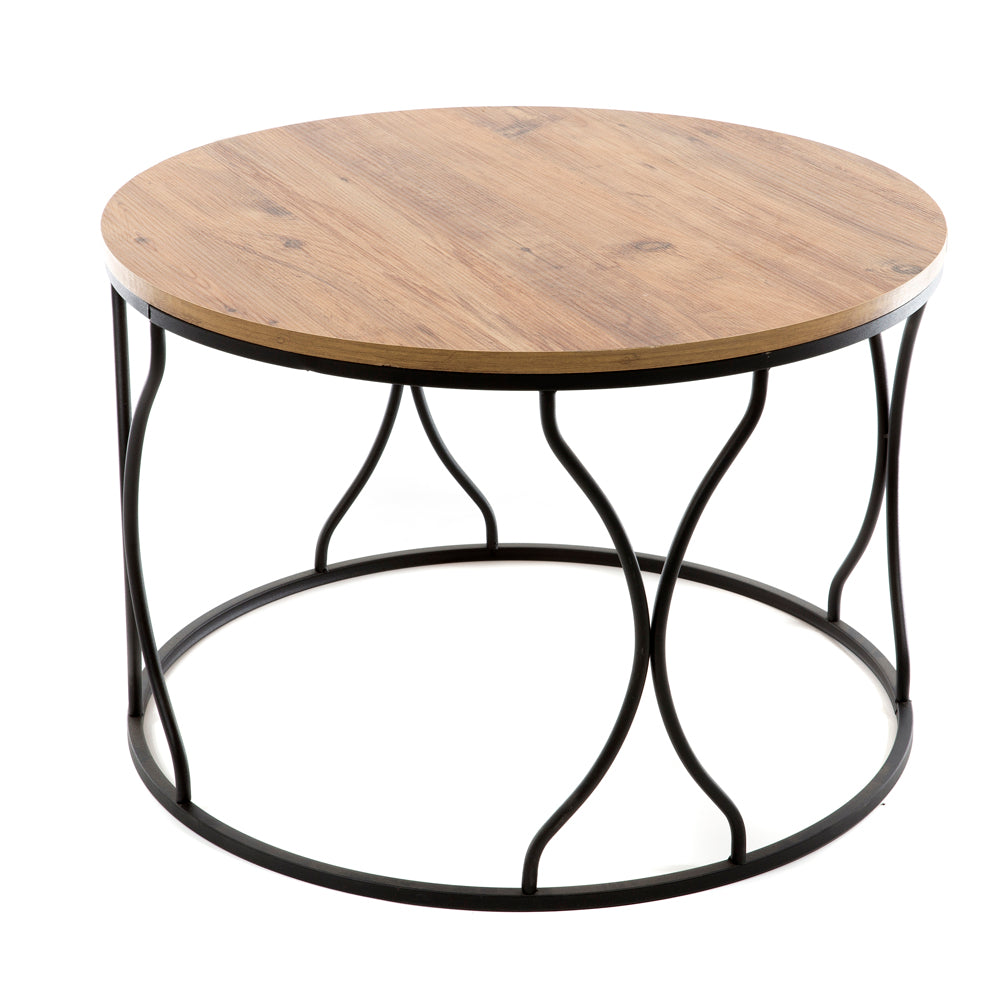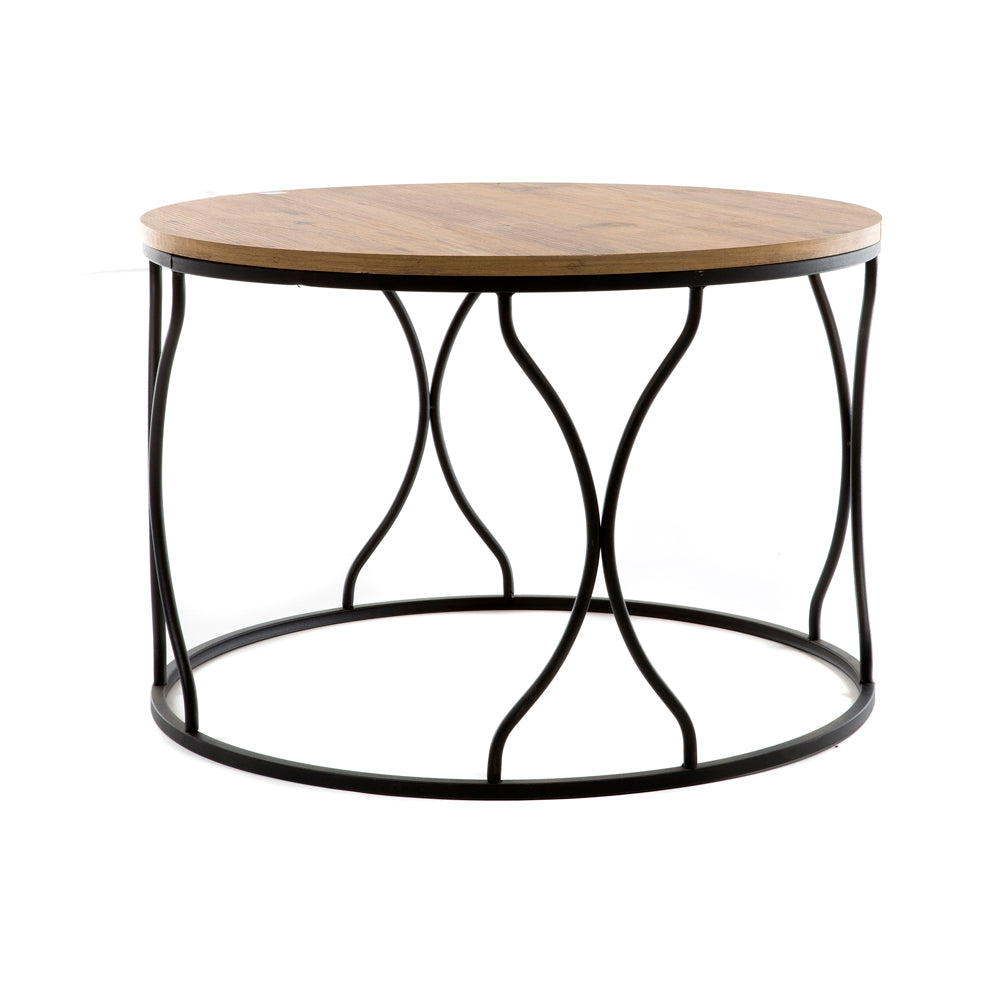 Artekko Τραπέζι σαλονιού μεταλλικό μαύρο Φ75x45 με Ξύλινο καπάκι