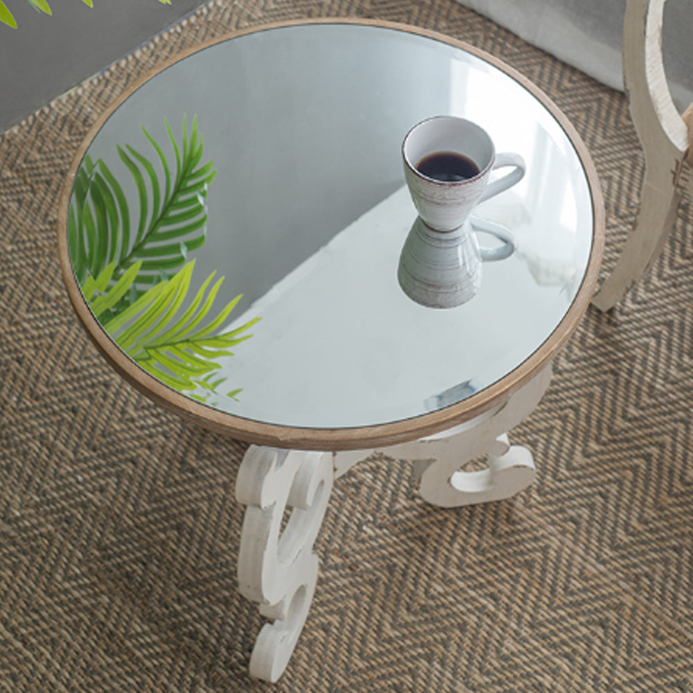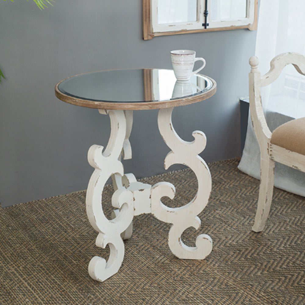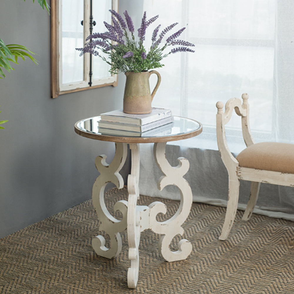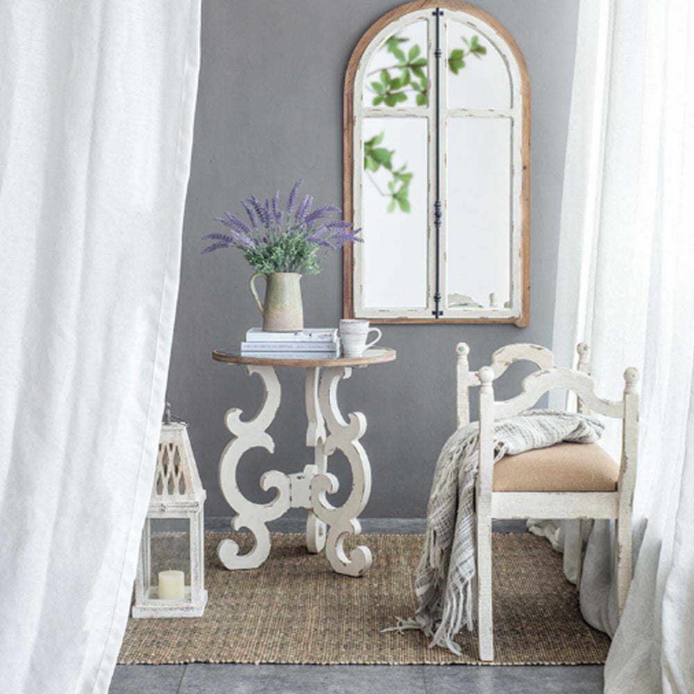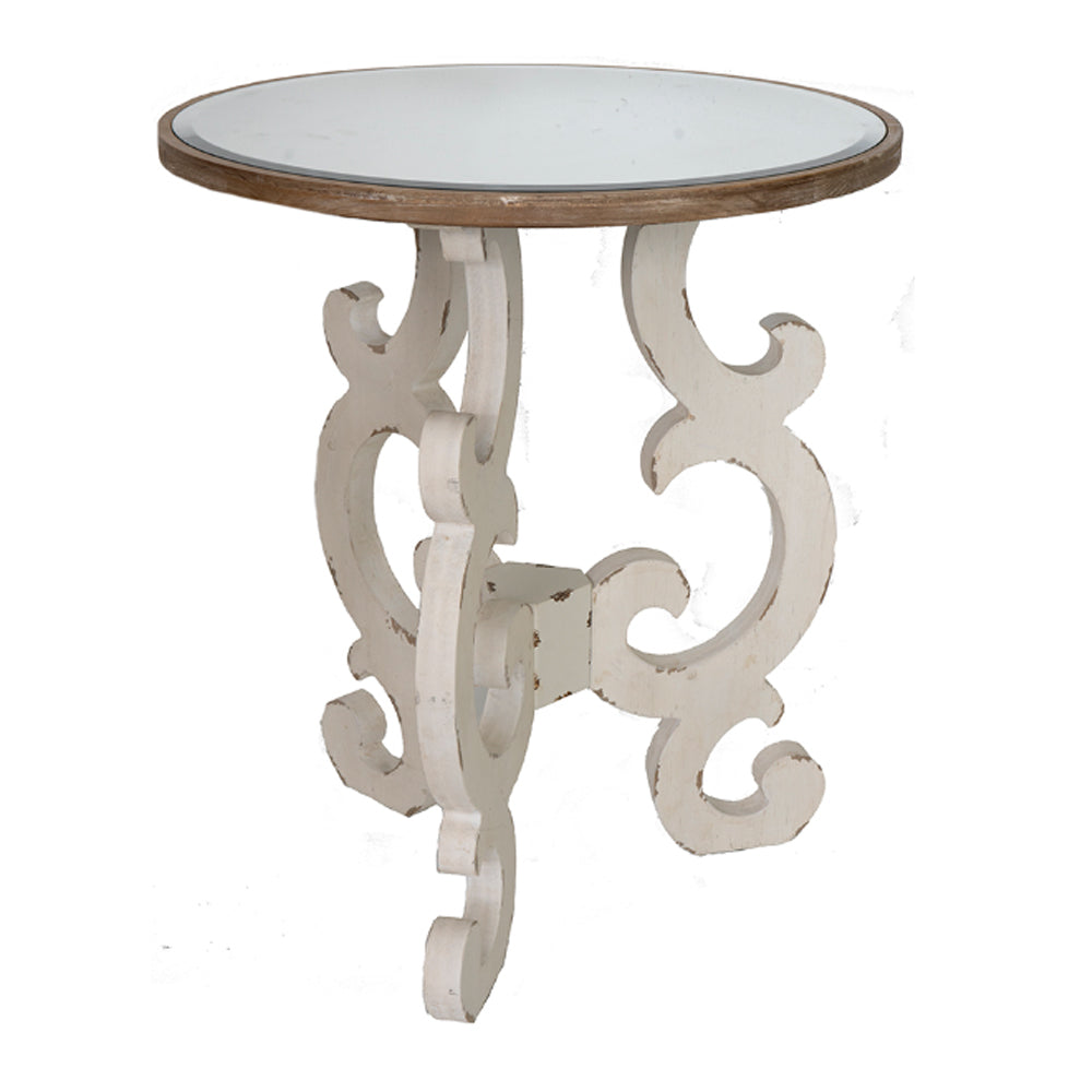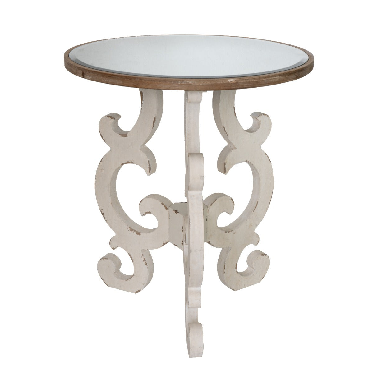 Artekko Alcott Τραπέζι Βοηθητικό με Καθρέπτη Ξύλινο Καφέ Λευκή Πατίνα (60x60x71)cm