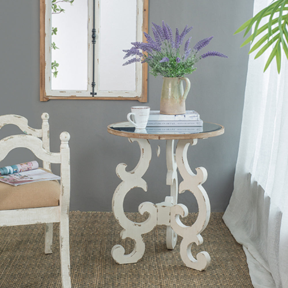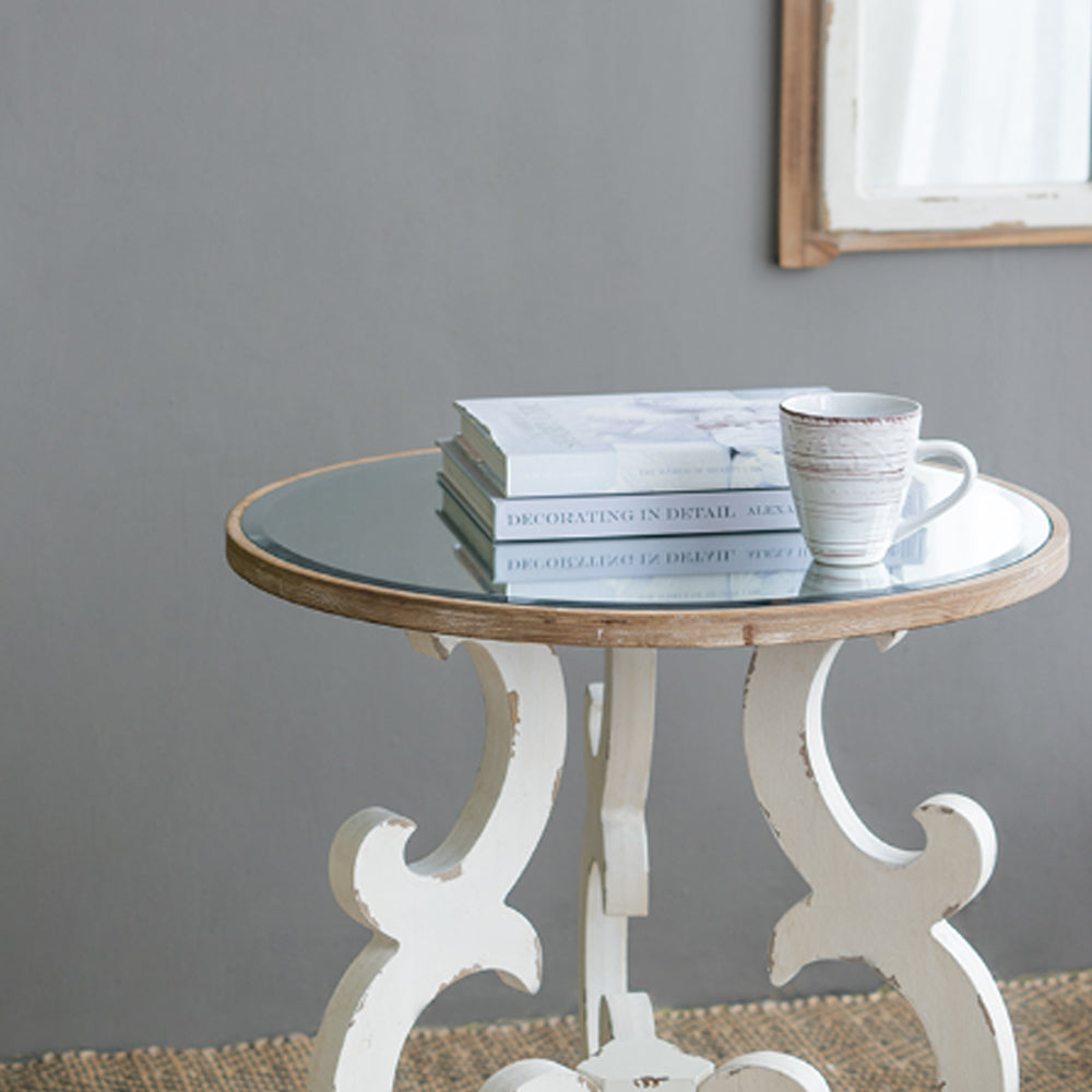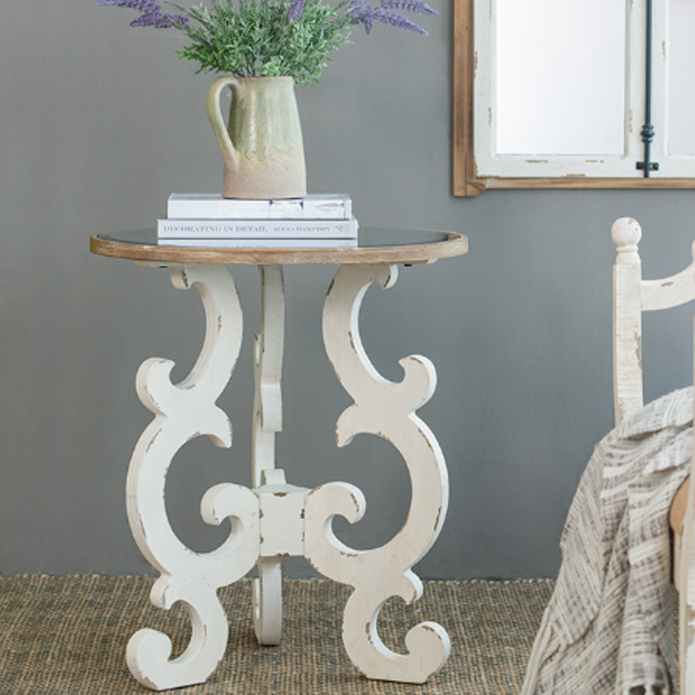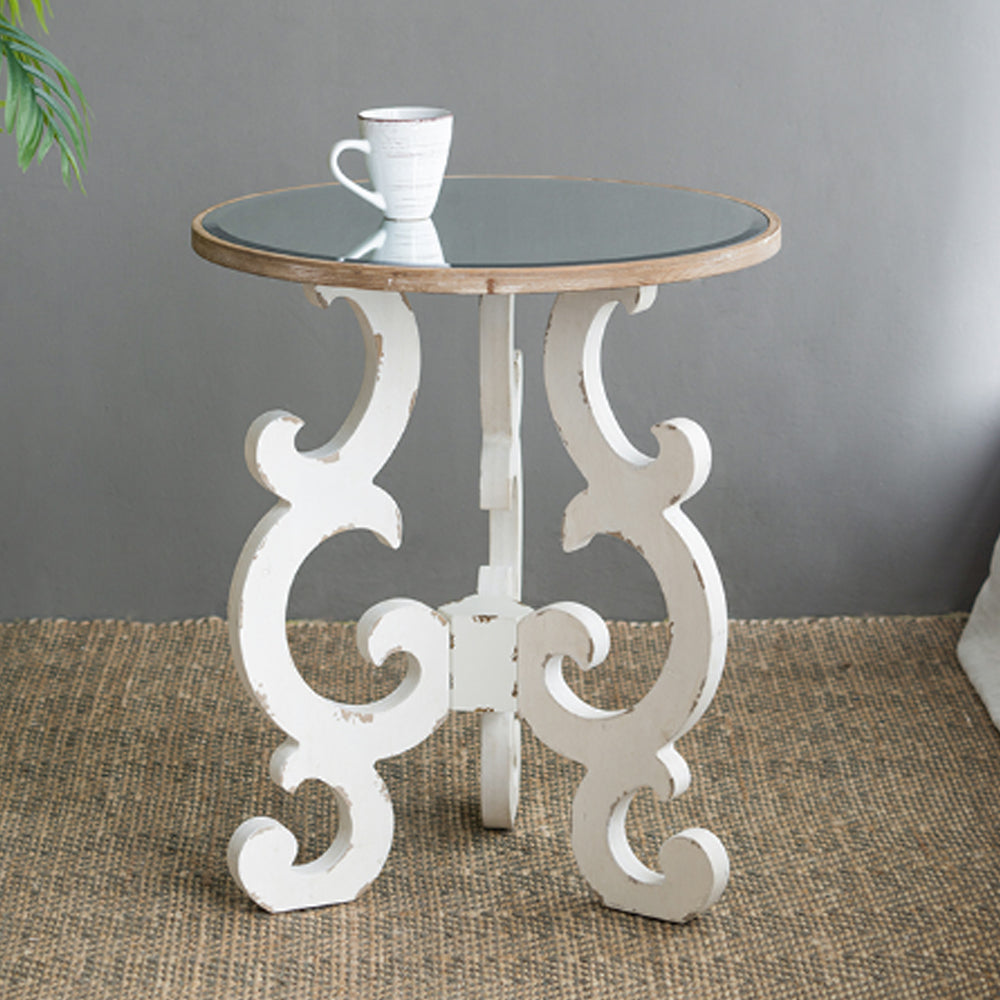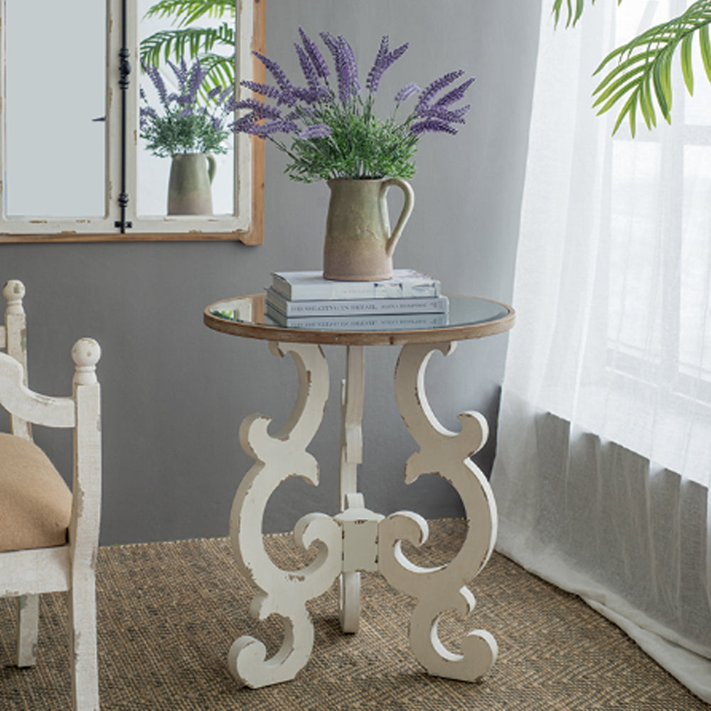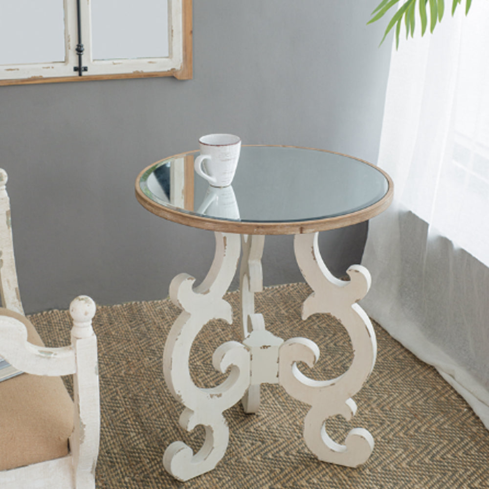 Artekko Alcott Τραπέζι Βοηθητικό με Καθρέπτη Ξύλινο Καφέ Λευκή Πατίνα (60x60x71)cm